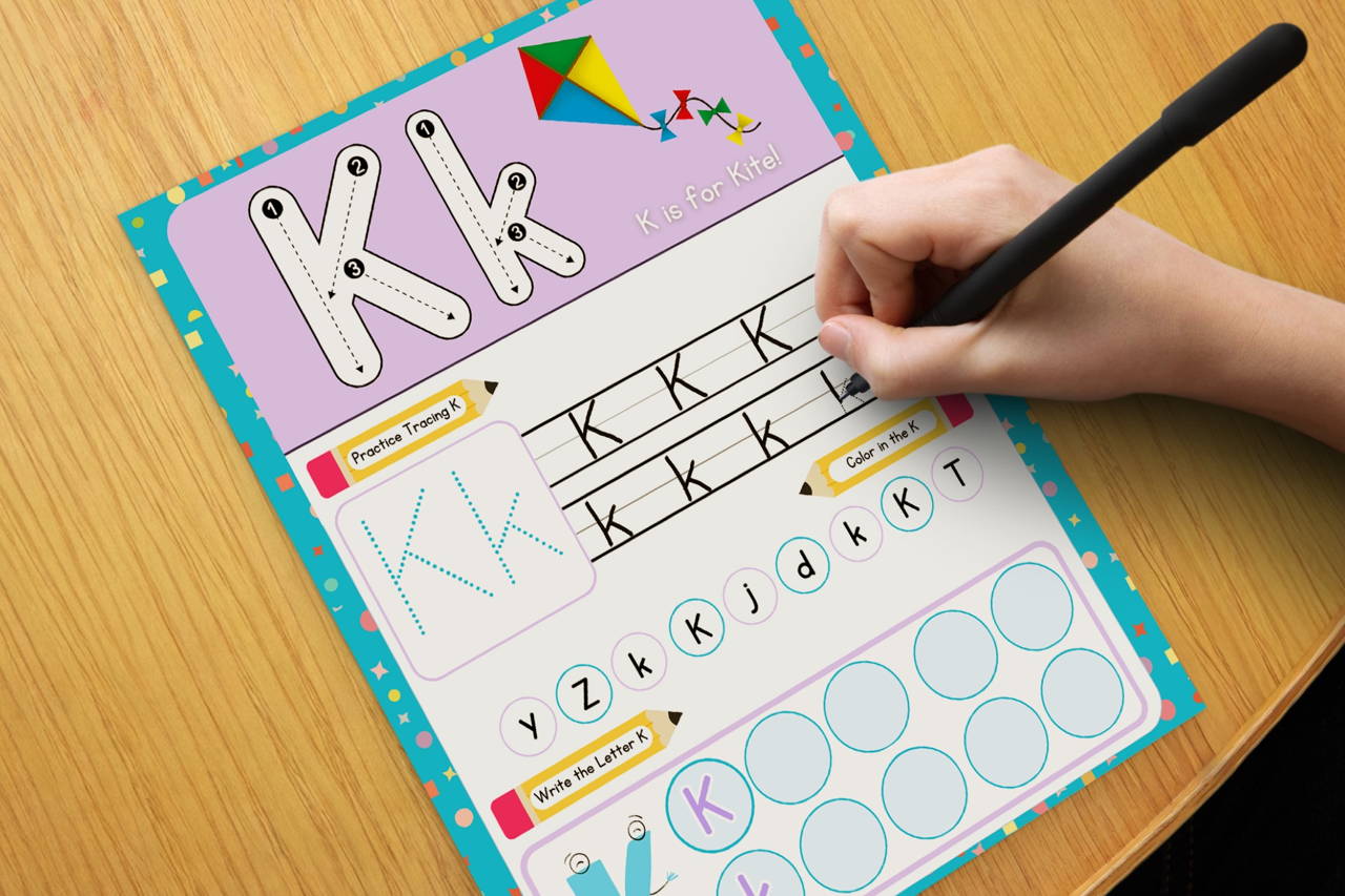 Watch your child recognize, trace, and write letters from A to Z with ease!